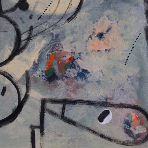 The surfaces of these industrial and worn-out canvases are intervened by Fagan through stitching where figures appear, full of chromatic and spatial rhythms, with titles that point to a certain iconographic condition. In this operation, which appeals to both the tradition of tapestry and pictorial practices, the artist's interest in breaking disciplinary boundaries and experimenting with different materials becomes clear.