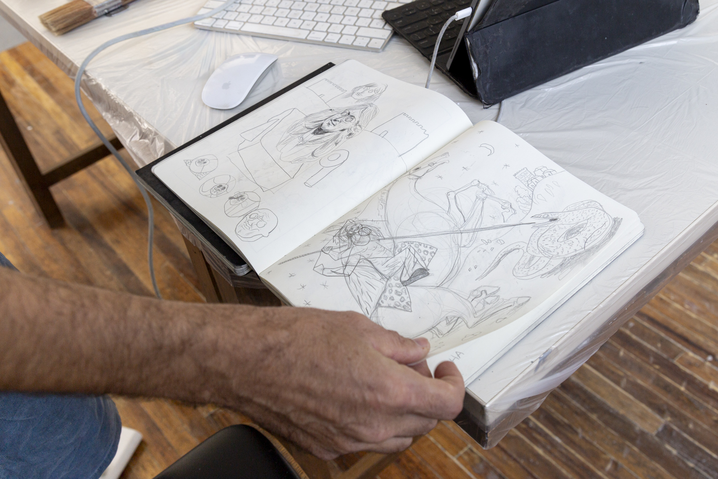 Theo Michael (n. 1978, Panorama, Grecia) vive y trabaja en Grecia, el Reino Unido y México. Artista interdisciplinario, la obra de Michael ha sido descrita por otros artistas como «antropología ebria». Sus dibujos, esculturas y mosaicos se inspiran en referencias arqueológicas, de ciencia ficción e historia natural para crear mundos alternos en los que se han derrumbado las fronteras y jerarquías entre culturas y especies. A través de un lenguaje visual idiosincrásico, Michael construye reinos inmersivos y cuasi ficticios, invitando al espectador a navegar por espacios en los que lo familiar y lo fantástico coexisten y se entrecruzan.